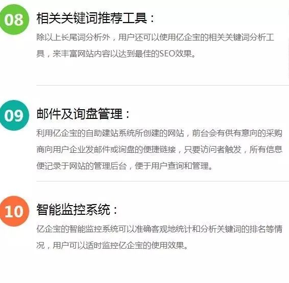 億企寶為滿足不同用戶的不同需要和偏好,已有多套多種配色方案的網站模板,用戶只需要選擇好適合自己的模板,按提示填充個性化的內容,網站可自動生成,并自動解析到用戶的域名。智能建站系統支持中英文兩種語言。每個PC端網站配備一個手機網站,同步管理。