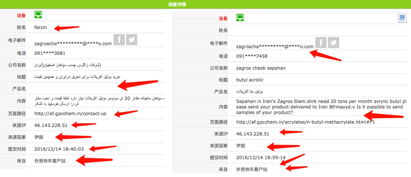 如上圖:客戶首先用當地語種谷歌訪問網站,很自然的發了母語的詢盤,隨后又補發了英語詢盤