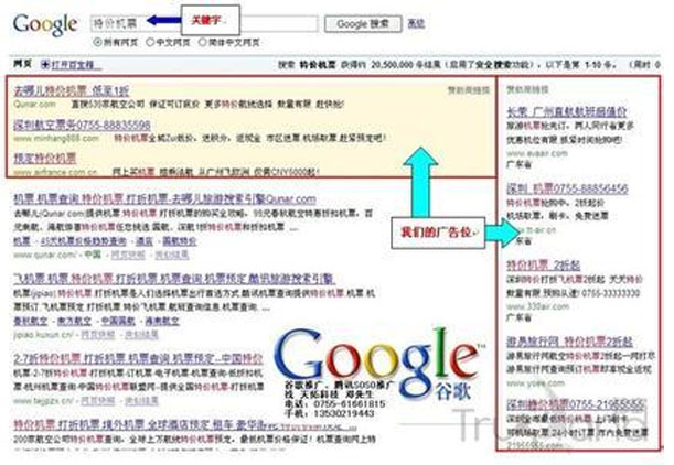 4. 性價(jià)比高:Google的搜索引擎被眾多門戶網(wǎng)站使用,在Google左側(cè)排名廣告也就意味著在使用Google搜索引擎的門戶網(wǎng)站上做廣告!