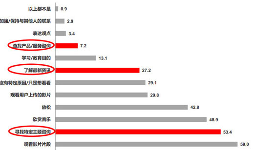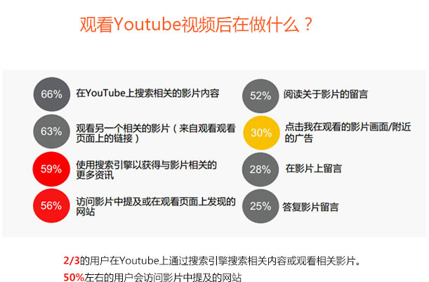 2/3的用戶在Youtube上通過搜索引擎搜索相關(guān)內(nèi)容或觀看相關(guān)影片。