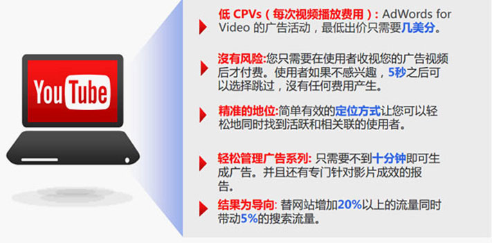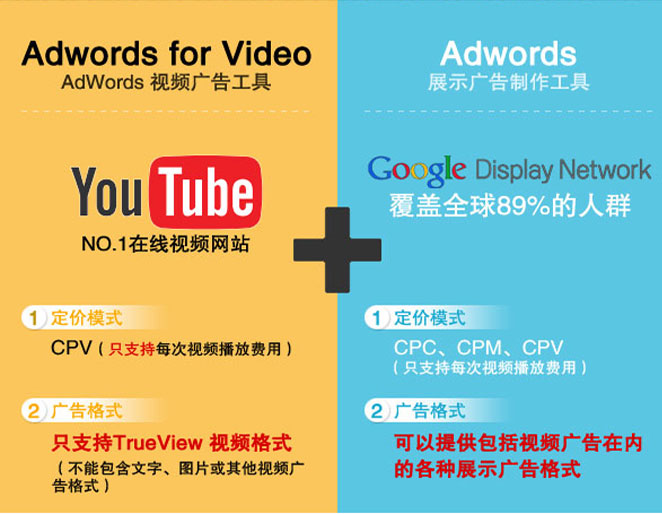 2012年,Google 正式推出向所有廣告主開放的AdWords for Video廣告平臺。 從名稱可以看出,新廣告平臺延續(xù)了Google Adwords關(guān)鍵詞競價廣告系統(tǒng)的邏輯 廣告主可以根據(jù)用戶的搜索結(jié)果來投放視頻廣告。