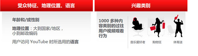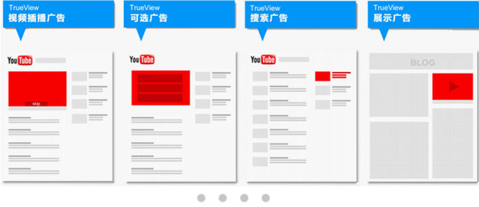 TrueView插屏廣告(In-stream Ads),號召性用語重疊式廣告,TrueView展示廣告 (Discovey Ads),導(dǎo)視廣告(Bumper Ads)和Youtube搜索廣告(Youtube Search)。